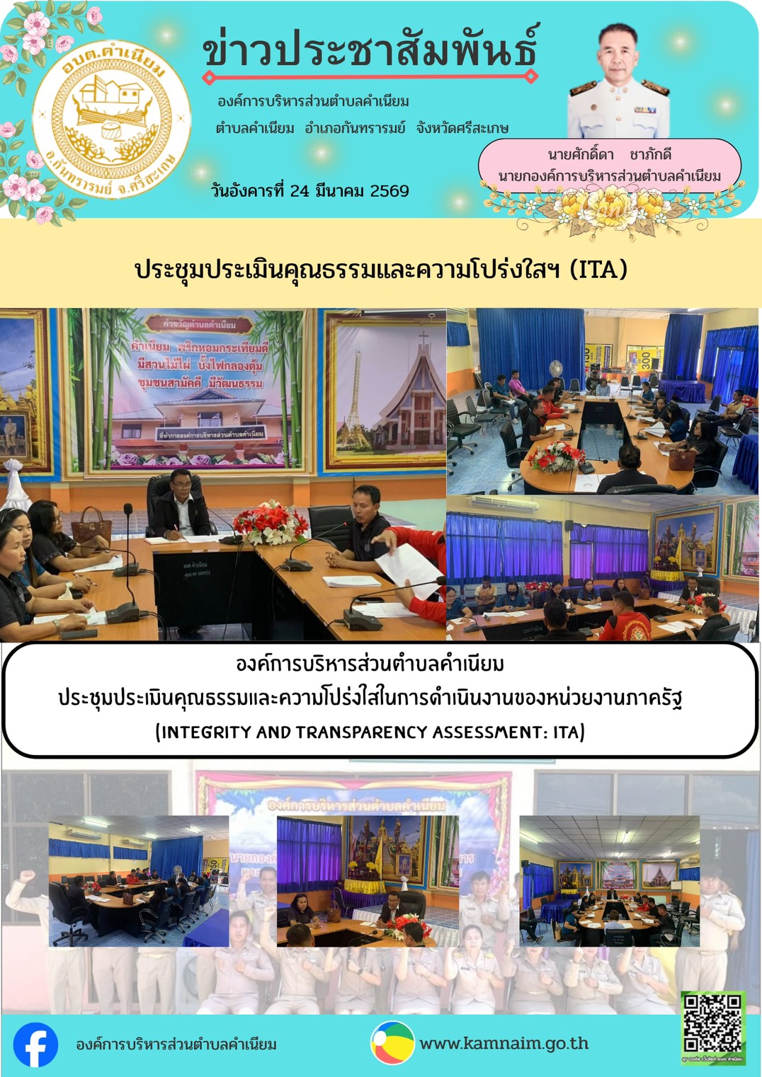 | ประชุมประเมินคุณธรรมและความโปร่งใสในการดำเนินงานของหน่วยงานภาครัฐ (Integrity and Transparency Assessment: ITA) |